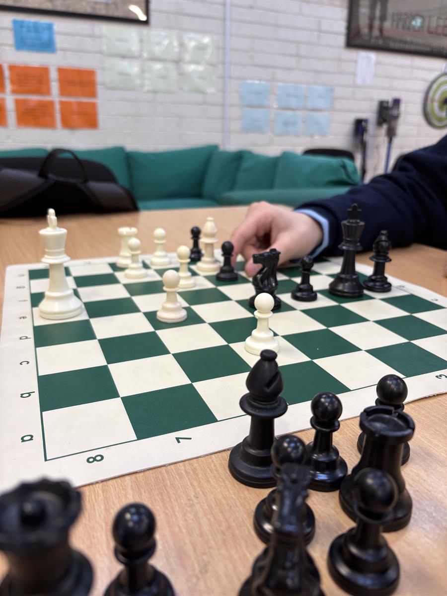 He first placed all the pawns on the diagram and told them what they are and what they do. After he explained their purpose, he told them they’d play a mini game using the pawns. They were all sitting opposite someone who they started playing against. All the TYs had only their pawns on the board and the objective was to get one pawn on the opponent's side of the board or capture all of the opponent's pawns.
